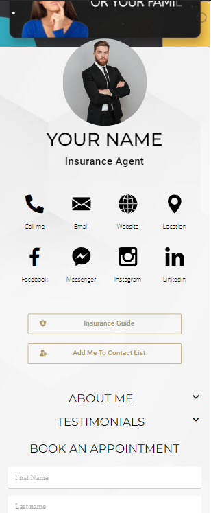 Add your Content The content is up to you. Besides your contact details and social networks, add Featured Listings, Hot Offers, VR Tours, and custom links so your customers get a rich experience with you!