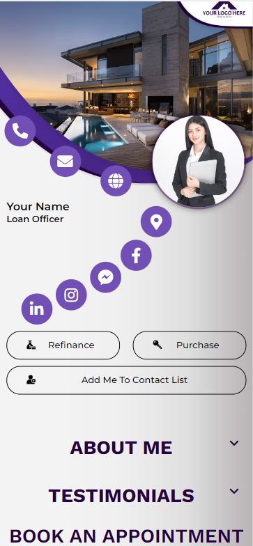 Add your Content The content is up to you. Besides your contact details and social networks, add Featured Listings, Hot Offers, VR Tours, and custom links so your customers get a rich experience with you!